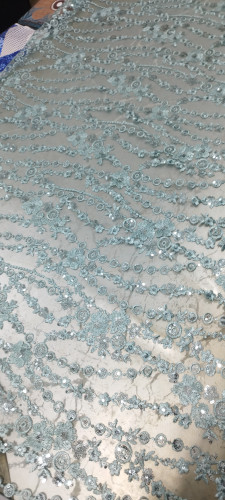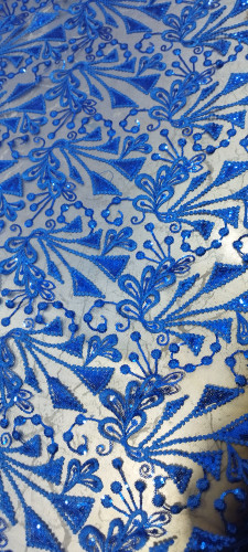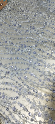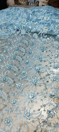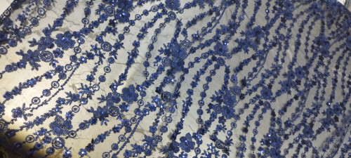 پارچه گیپور پولک دوزی آبی کاربنی