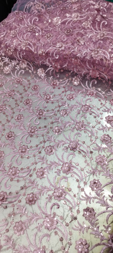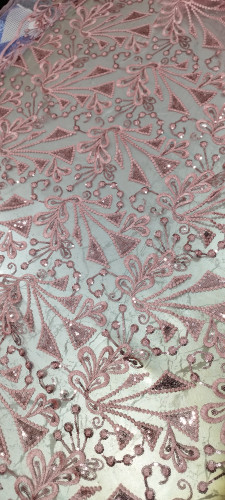 پارچه گیپور پولک دوزی صورتی