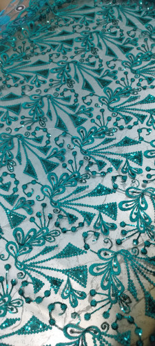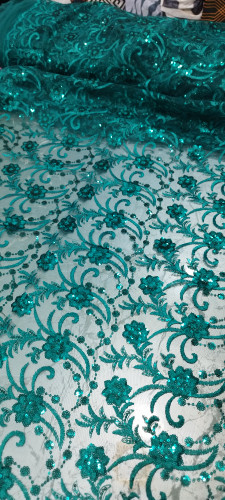 پارچه گیپور پولک دوزی سبز لجنی