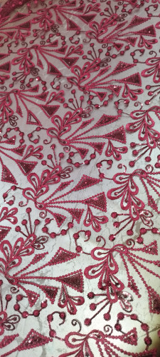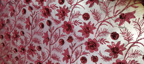 پارچه گیپور پولک دوزی زرشکی