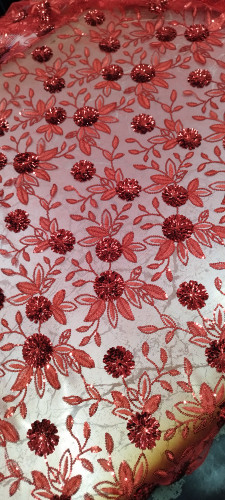 پارچه گیپور پولک دوزی قرمز