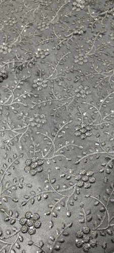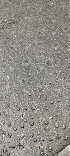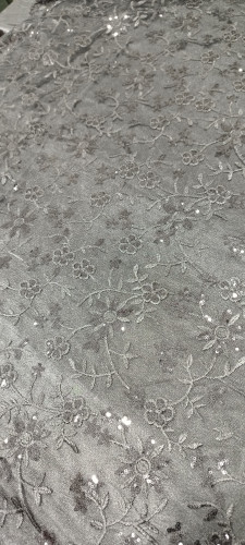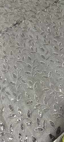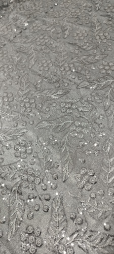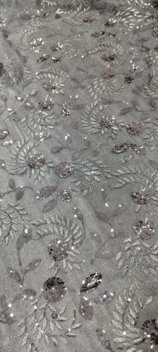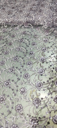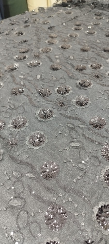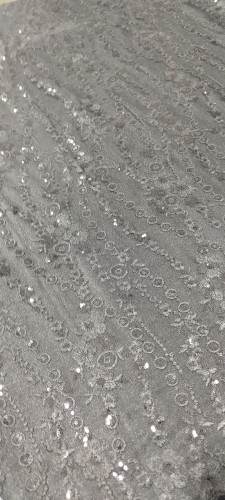 پارچه گیپور پولک دوزی طوسی