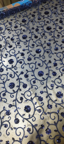 پارچه گیپور پولک دوزی سورمه ای